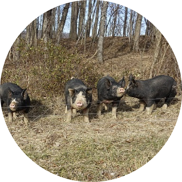 Open pasture-raised pigs encourage increased soil aeration, due to their natural feeding and rooting behavior. Their ground wallowing and movement encourages seed distribution, helping to increase grass diversity around the pasture. When overgrazed, Pig behavior can often lead to pasture destruction and degradation. Through considerate management of Pigs, they can be active and effective participants in promoting pasture health.